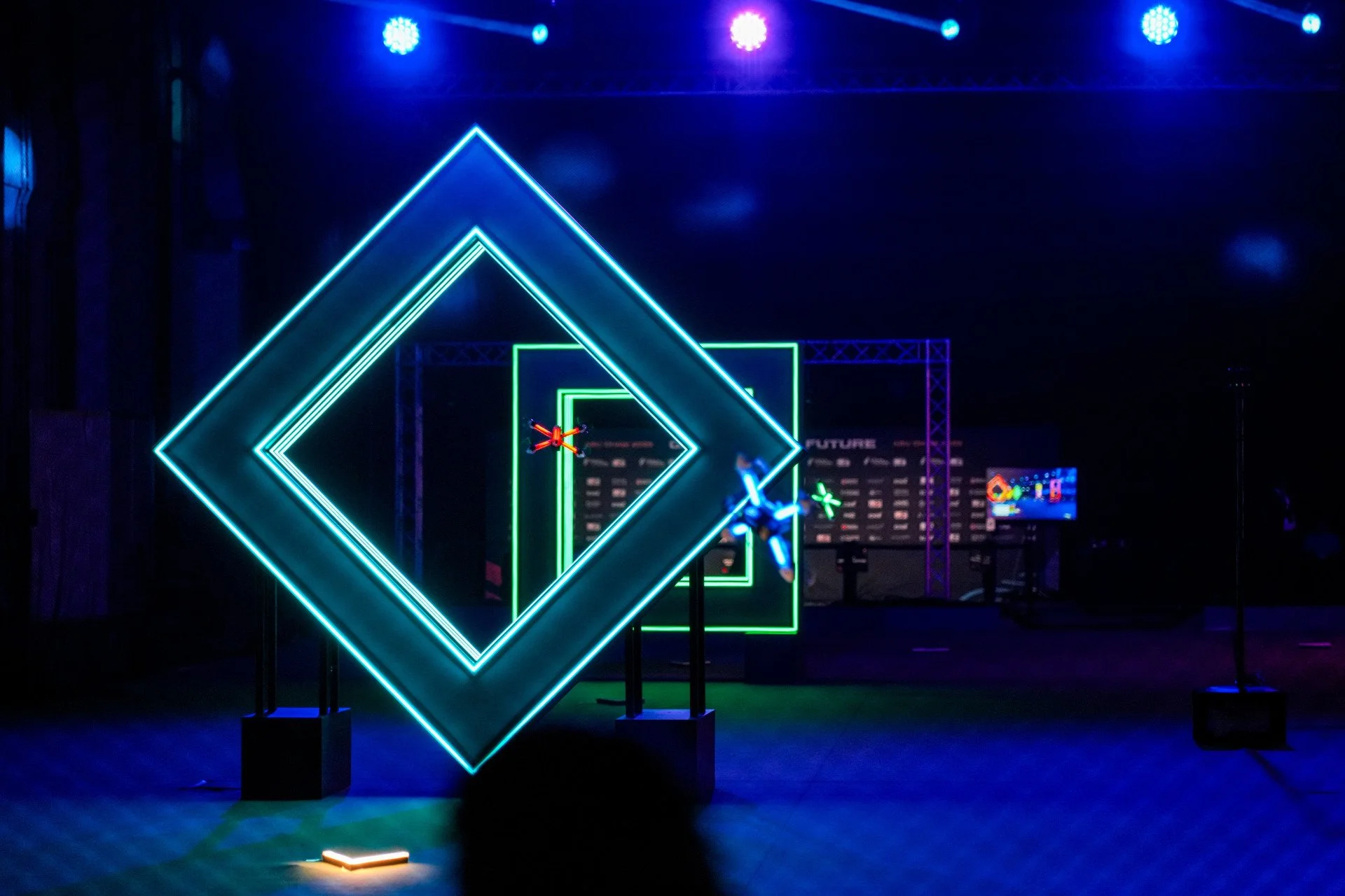 Tech Drone League (TDL) took on Rolf, Spain Drone Team and Belka Team. Over a fast-paced 50 laps, the lead swapped between TDK and Rolf several times – including when TDL changed their drone in the last two laps. However, TDL held on to take the win, with Rolf 38 seconds behind them.